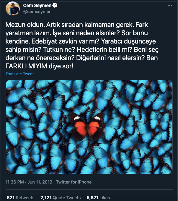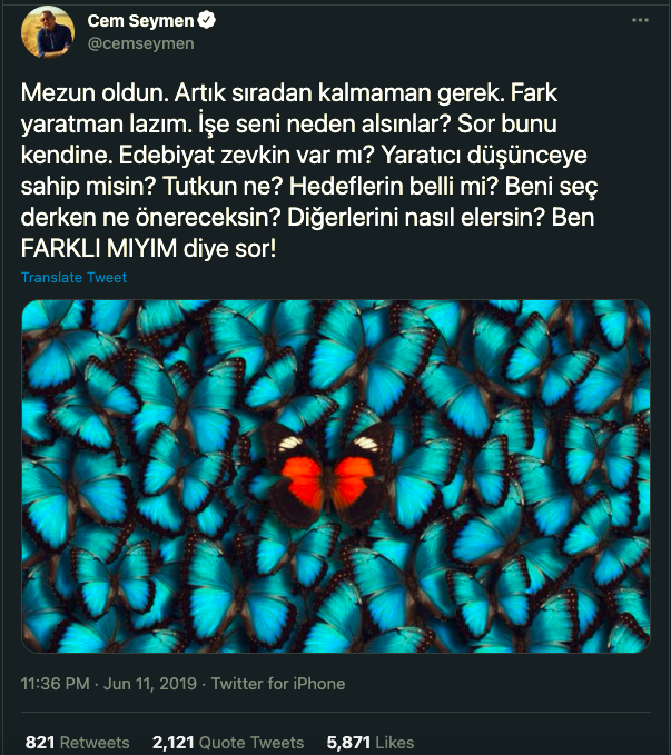 Twitter (Erişim tarihi 29 aralık 2019) https://twitter.com/cemseymen/status/1138545681419911169