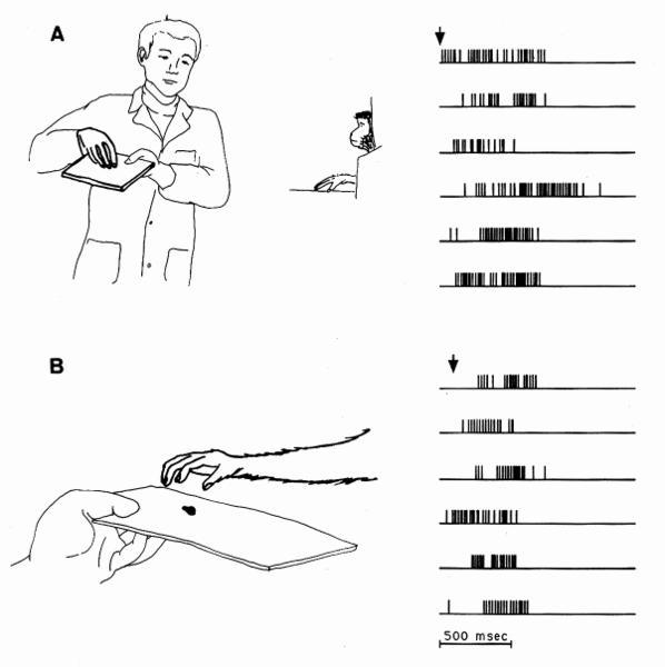 Bitmiyordu! Yukarıdakine benzer bir çalışmada, bu sefer maymunların bir yiyeceği eliyle alan, ters pense ile (elini gevşeterek) alan ve bir kürdan saplayarak alan kişileri gözlemledikleri başka bir çalışmada el ile alma ve ters pense ile almayı gözlemleme sırasında benzer nöronların aktifleştiği gözlenmiş. Dolayısıyla muhtemelen bizler de sadece bir aleti kullanırken kendi bedenimizin bir uzantısı gibi bir deneyim yaşamakla kalmıyoruz, bir aletin çalışmasını gözlemlerken de bir bedeni izlediğimiz hissine kapılıyor olabiliriz. Aşağıdaki videoda kollar, bacaklar, uzayıveren kafalar, ağzı ile yerleştirilen bulaşıklar görmek durumundasınız yani.